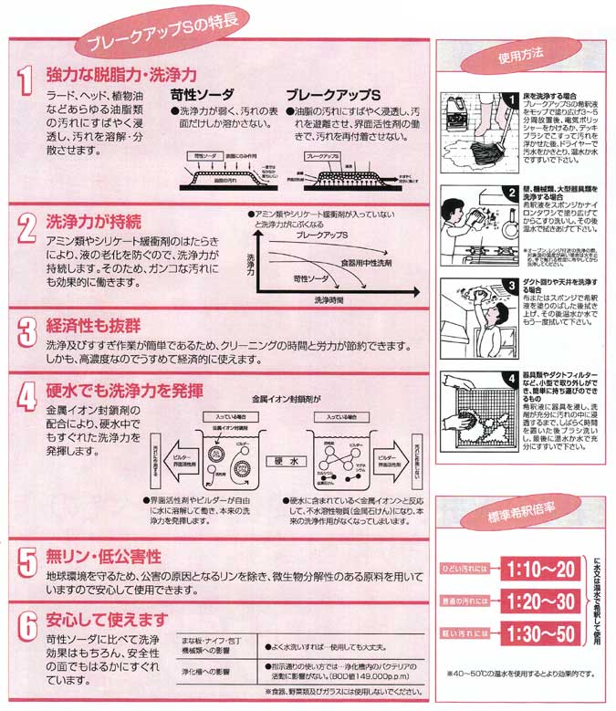 - ラード、ヘッド、食用油などの落ちにくい油脂類の汚れをすばやく落とす油脂専用強力クリーナー。強力な脱脂力、洗浄力で、すばやく完全に頑固な汚れを落とします。シリケート緩衝作用により液の老化を防ぐので、洗浄力がいつまでも維持され、しかも高濃度なので経済的です。