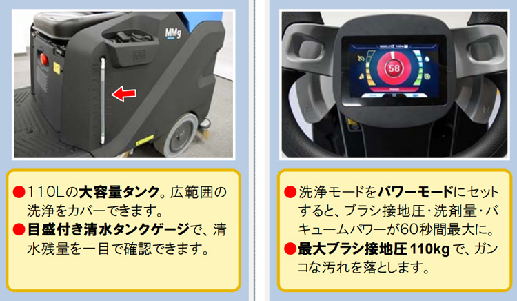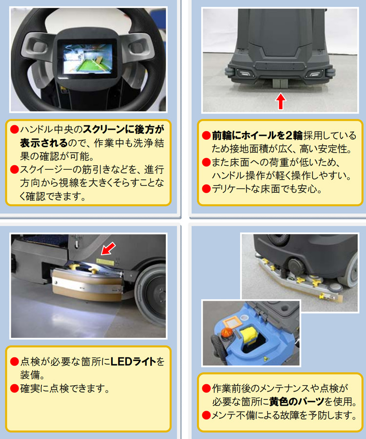 低床設計で乗り降りラクラク、誰でも快適に広範囲を洗浄。