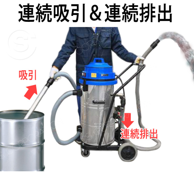 - 連続吸引、連続排出が可能な液体専用バキューム